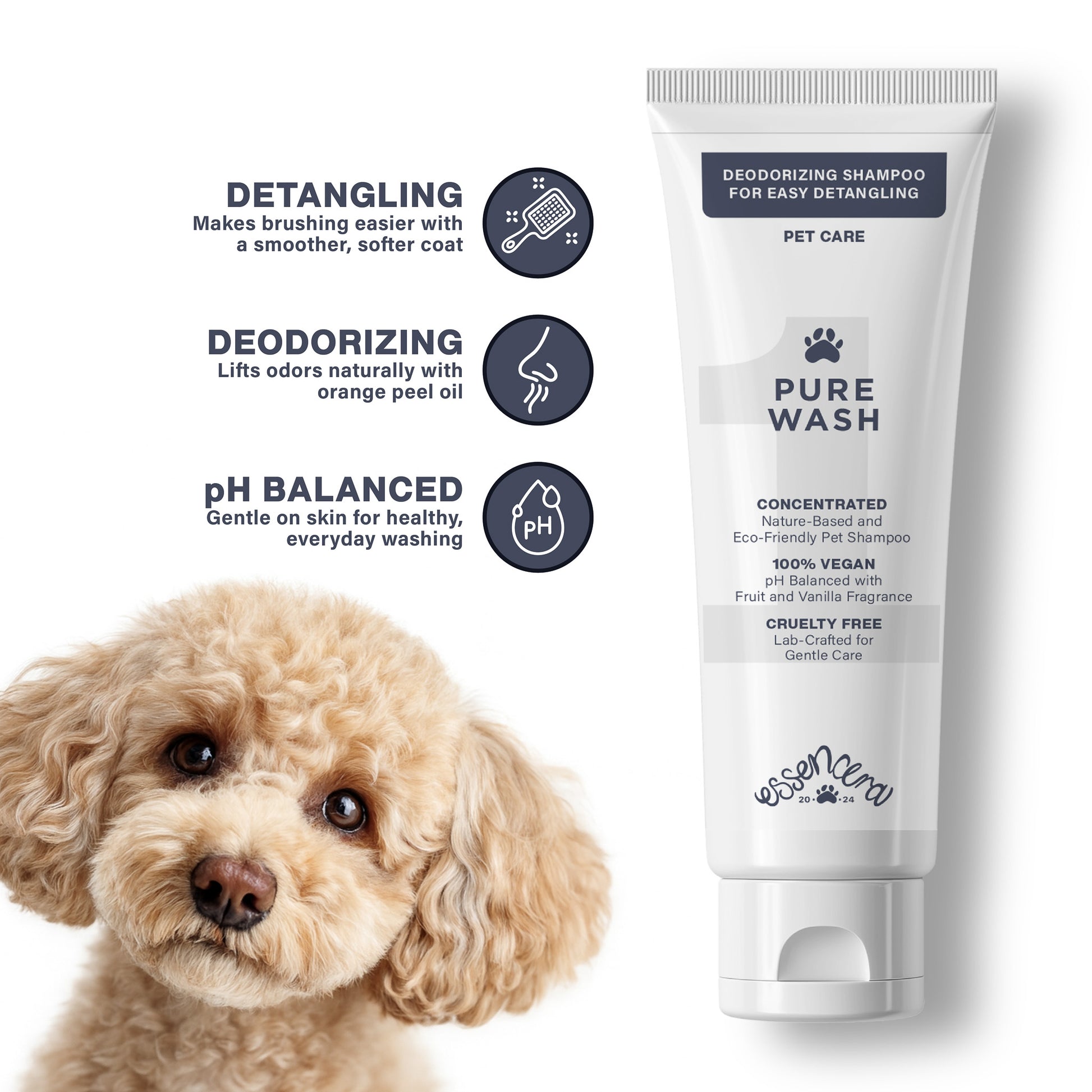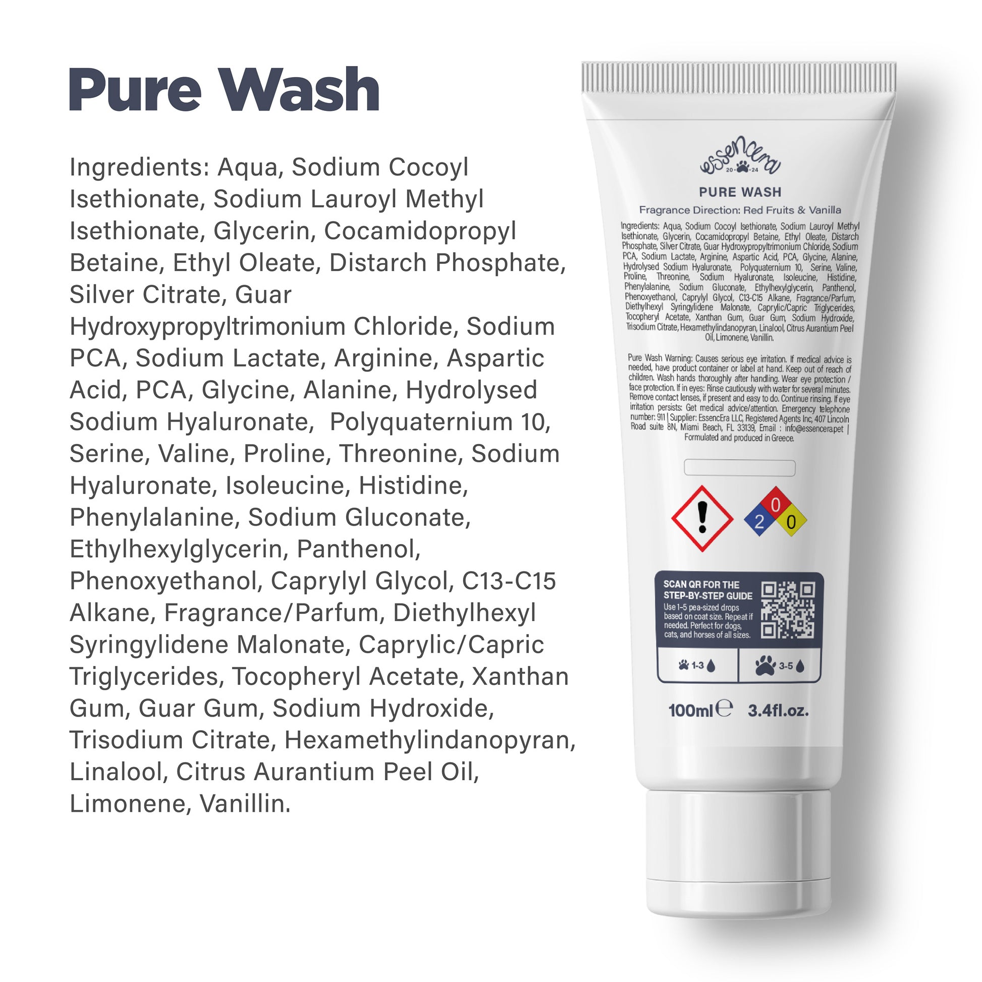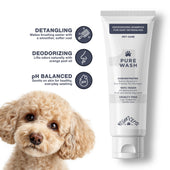 Pure Wash is your go to gentle cleanse for dogs, cats, and even horses who need effective deodorizing without harsh detergents. Made with human grade coconut based surfactants, Pure Wash removes buildup, dirt, sweat, and odor while preserving natural coat oils so the skin remains balanced and comfortable.